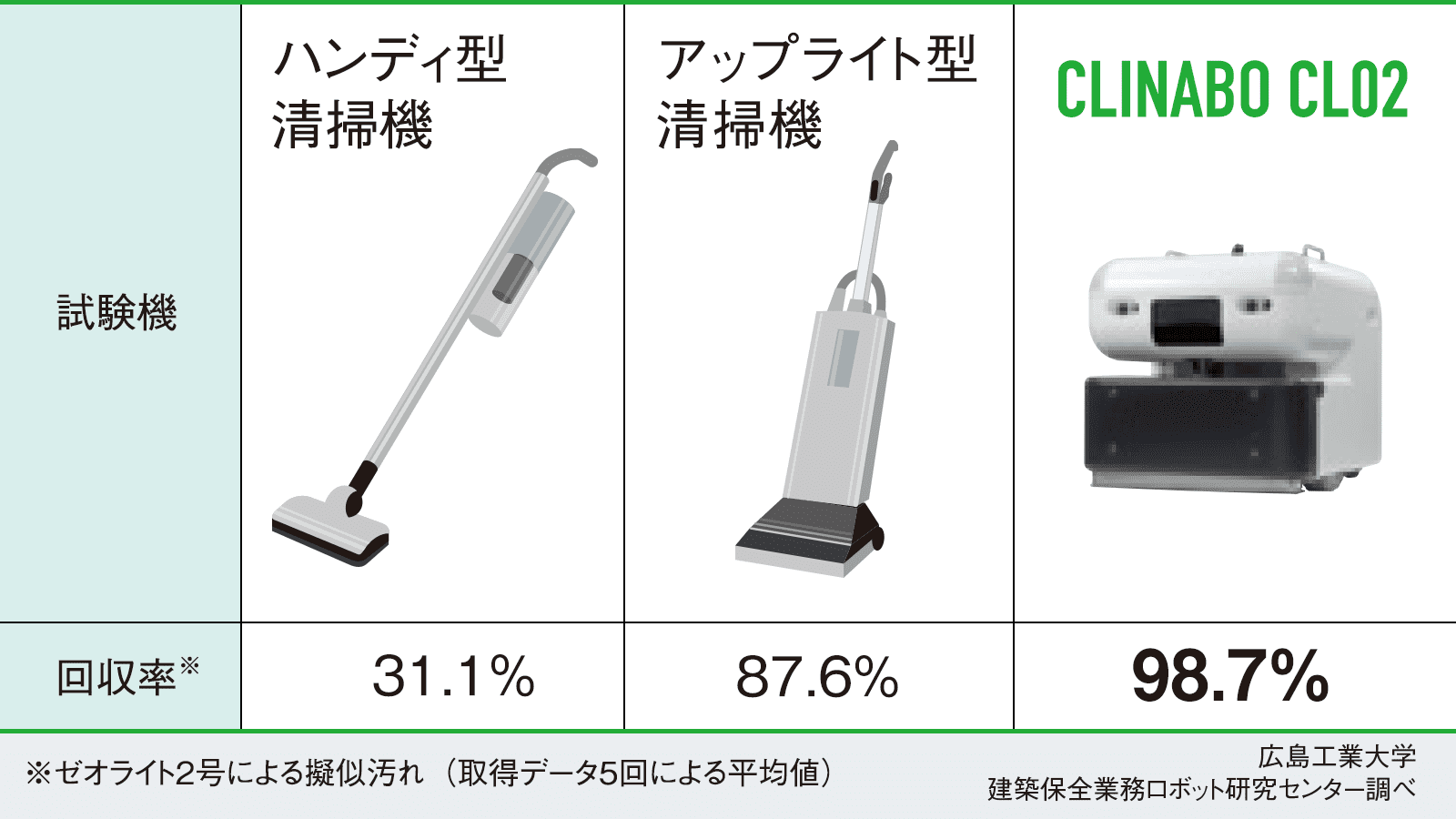 ゴミの吸塵力に関して手動の掃除機と比較しました。