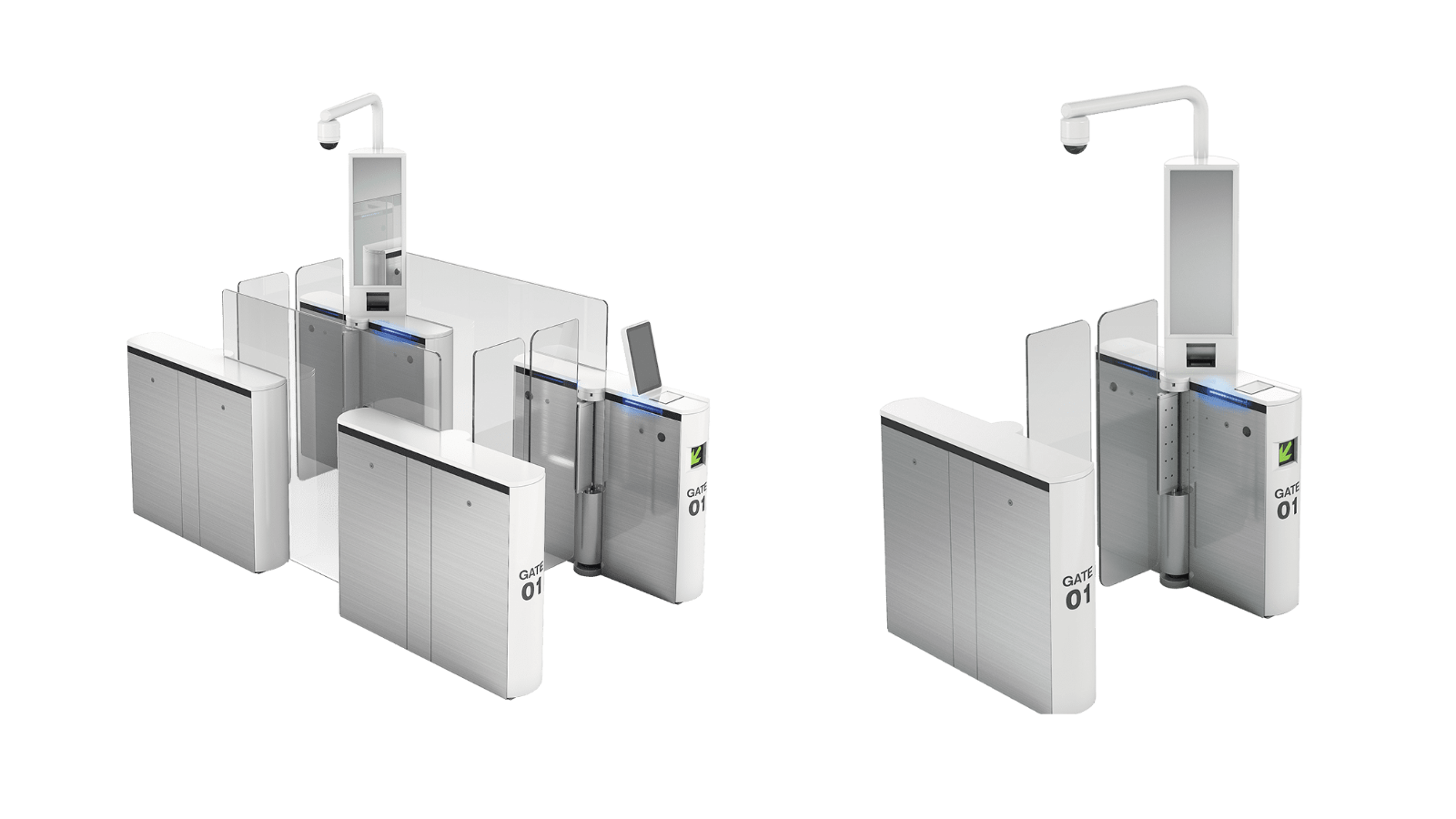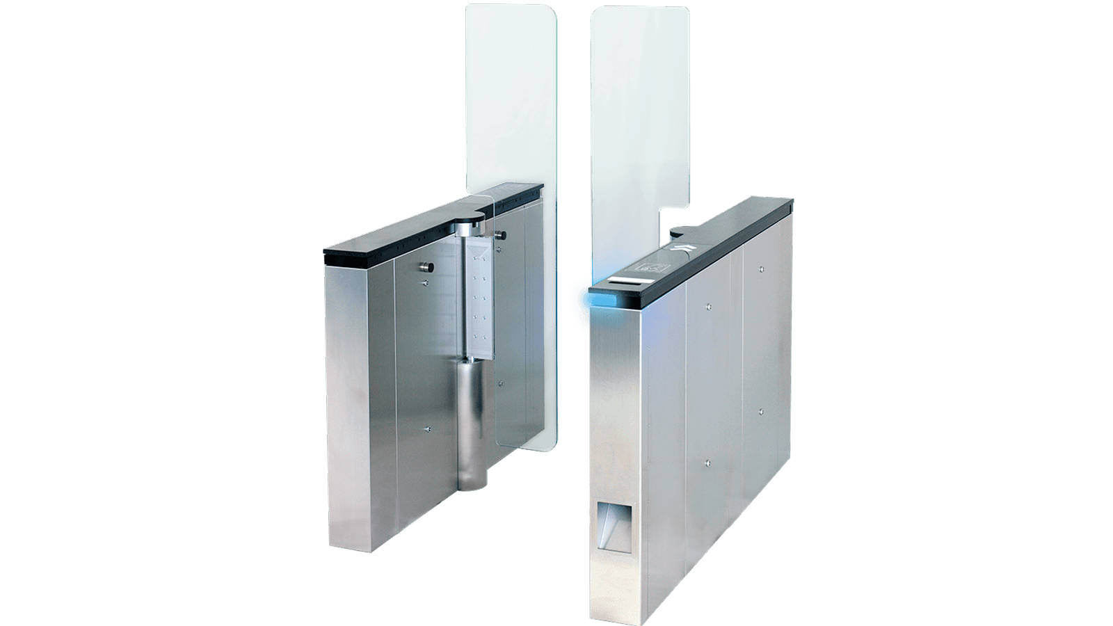 高さ1200mm/1800mmのハイフラップにより、ハイセキュリティエリアに最適なゲート。