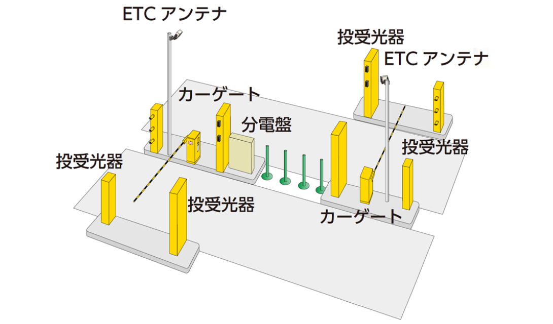 数m離れた位置から認証することができるUHF帯ICタグを利⽤し、⾞両と歩⾏者の両⽅の入退管理を⼀括して⾏いました。
